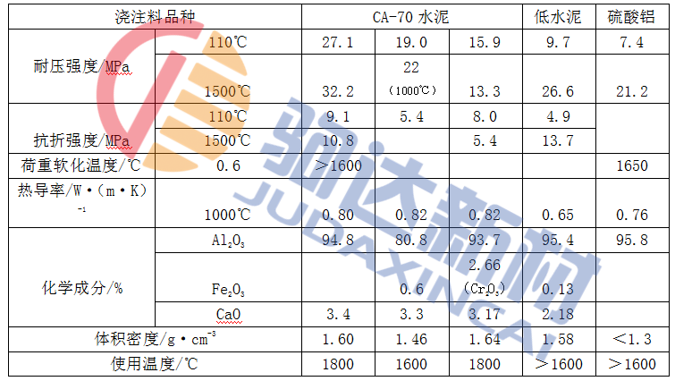 表1-2 氧化鋁空心球澆注料的性能