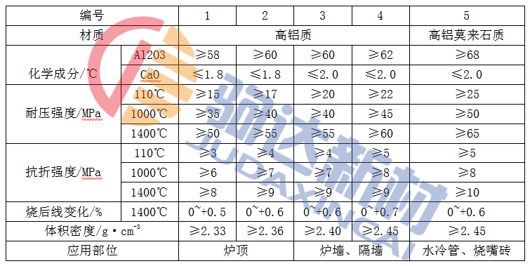 表1-1 微膨脹高鋁質(zhì)耐火澆注料的性能