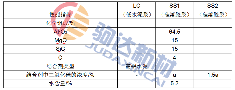 燒成試樣的結果。硅溶膠系比低水泥澆注料系顯示出更好的抗侵蝕性。低水泥系的抗侵蝕指數為100時,硅溶膠系的SS1為93,SS2為91。認為抗侵蝕性比低水泥系提高的主要原因是硅溶膠系中不含水泥。硅溶膠系統燒成后的品質特性沒有發現特別的問題,這是由于它與低水泥系有著近乎相同的性質。