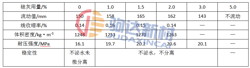 (2)硅灰既對(duì)澆注料的流動(dòng)性和物理力學(xué)性能有貢獻(xiàn),又具有粘稠性,與自制超細(xì)粉的復(fù)合使用,可同時(shí)獲得對(duì)流動(dòng)性和穩(wěn)定性的需要,硅灰的適宜用量為1.5%〜2.0%。