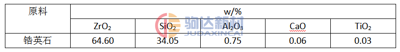 試驗所用的主要原料為w(Al2O3)=70.65%的燒結莫來石(5~3、3~1、≤0.088mm)、w(SiC)=97.9%的碳化硅(3~1、1~0.5、≤0.5mm)、鋯英石細粉,結合劑包括SiO2微粉、水泥細粉(w(Al2O3)=69.3%,w(CaO)=29.7%)和p—Al2O3細粉。鋯英石的主要化學組成見表1。