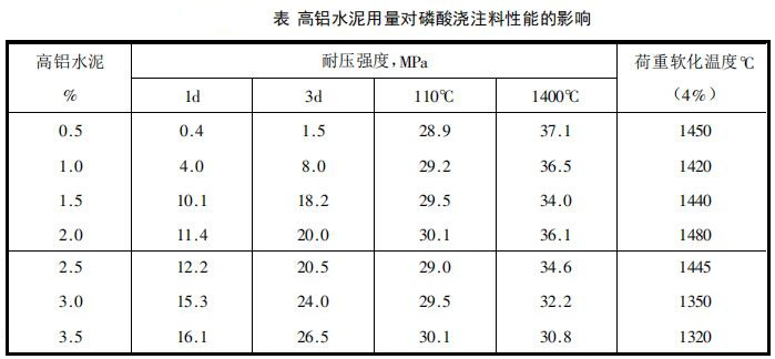在磷酸耐火澆注料原材料和配合比一定的情況下,只要能滿足施工要求,無論用何種促凝劑,其用量越少越好。